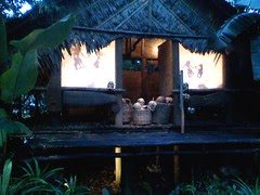 The whole experience at Night Safari reminded me of a friend of mine who used to work there... He will always experience chilling voices along a bridge deep-seated in the forest area...( you will only find the bridge if you explore the forest by foot instead of via the tram ride )... there was even once he saw a lady in white in the trees at midnight... and he fell sick after that, followed by a resignation letter... I'm not sure how true his story is, but there's only one way to find out... you have to see for yourself.... :)